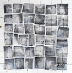 2018Van oude sinaasappelkistjes. Met zwart, wit en grijstinten 'grapjes' geschilderd